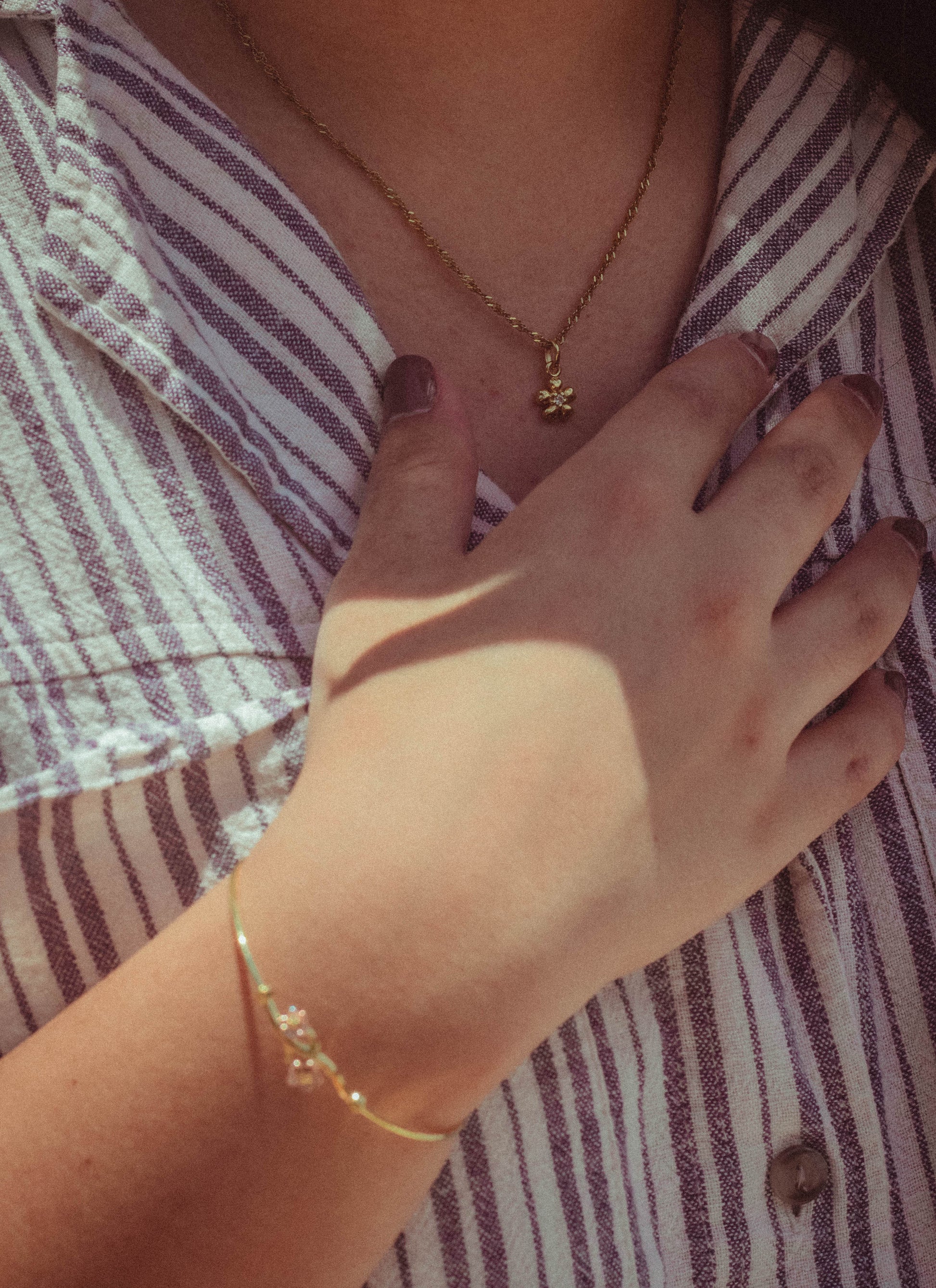 Treat yourself to our delicate and lovely Flower Charm, featuring a sparkling zirconia crystal in the center. Perfect for an everyday accessory, this charm is sure to make a subtle yet elegant statement.