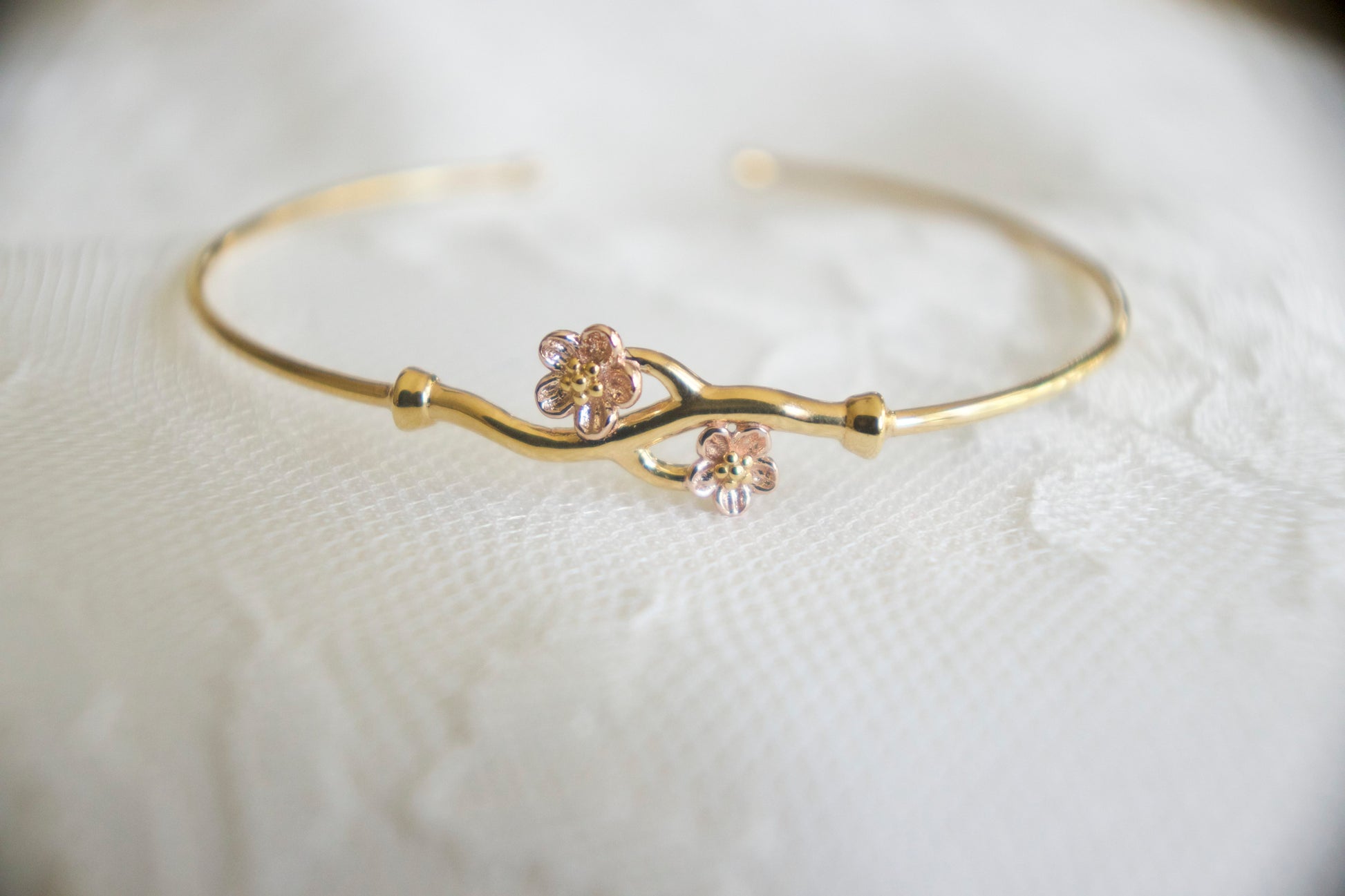 Our one-of-a-kind cuff harmoniously blends rose gold and gold to depict the ephemeral beauty of delicate blossoms. Embrace the captivating elegance of our Flower Cuff, a symbol of refined sophistication that celebrates the exquisite artistry found in nature's floral tapestry.