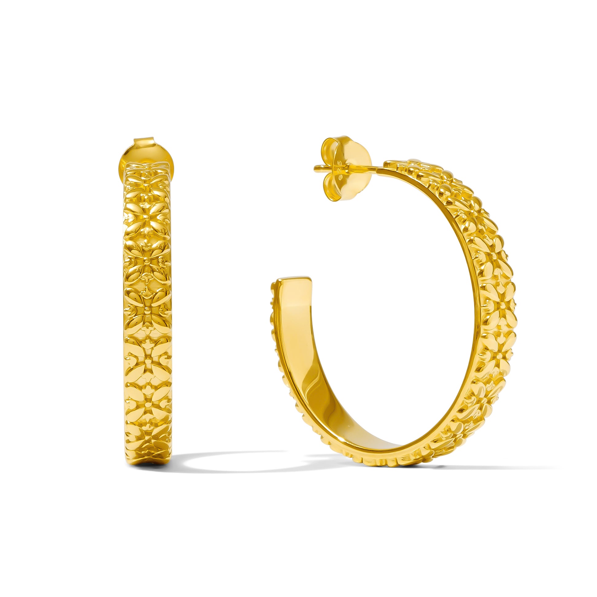 Inspired by the exquisite traditional talavera tiles found throughout Mexico, these hoops showcase a delicate talavera design. Perfect for adding a touch of sophistication to your ensemble, they are ideal for a fancy night out or an elegant occasion. Available in sterling silver and 18k gold plated over silver (gold vermeil).